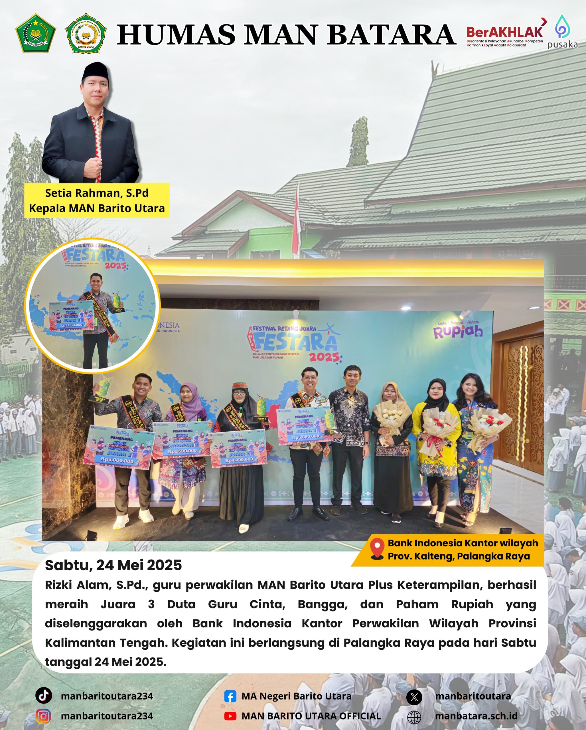 Guru Perwakilan MAN Barito Utara Juara 3 Guru Cinta Bangga.