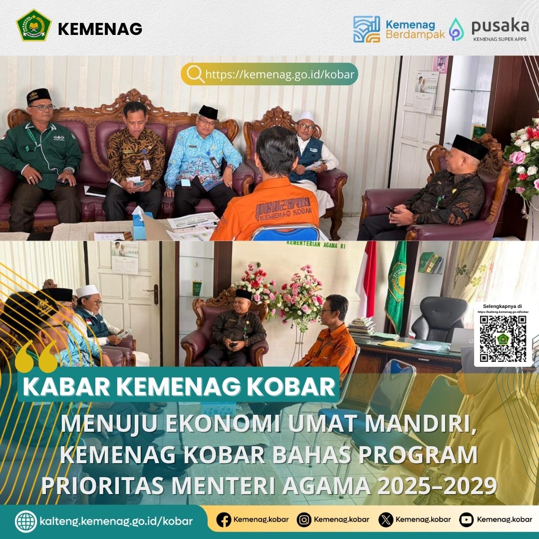Dalam sambutannya, Kepala Kantor Kemenag Kobar menegaskan bahwa sinergi antara BWI dan Kementerian Agama sangat diperlukan guna memastikan pengelolaan wakaf berjalan sesuai regulasi, tertib administrasi, serta mampu memberikan dampak nyata bagi pembangunan sosial dan ekonomi masyarakat.