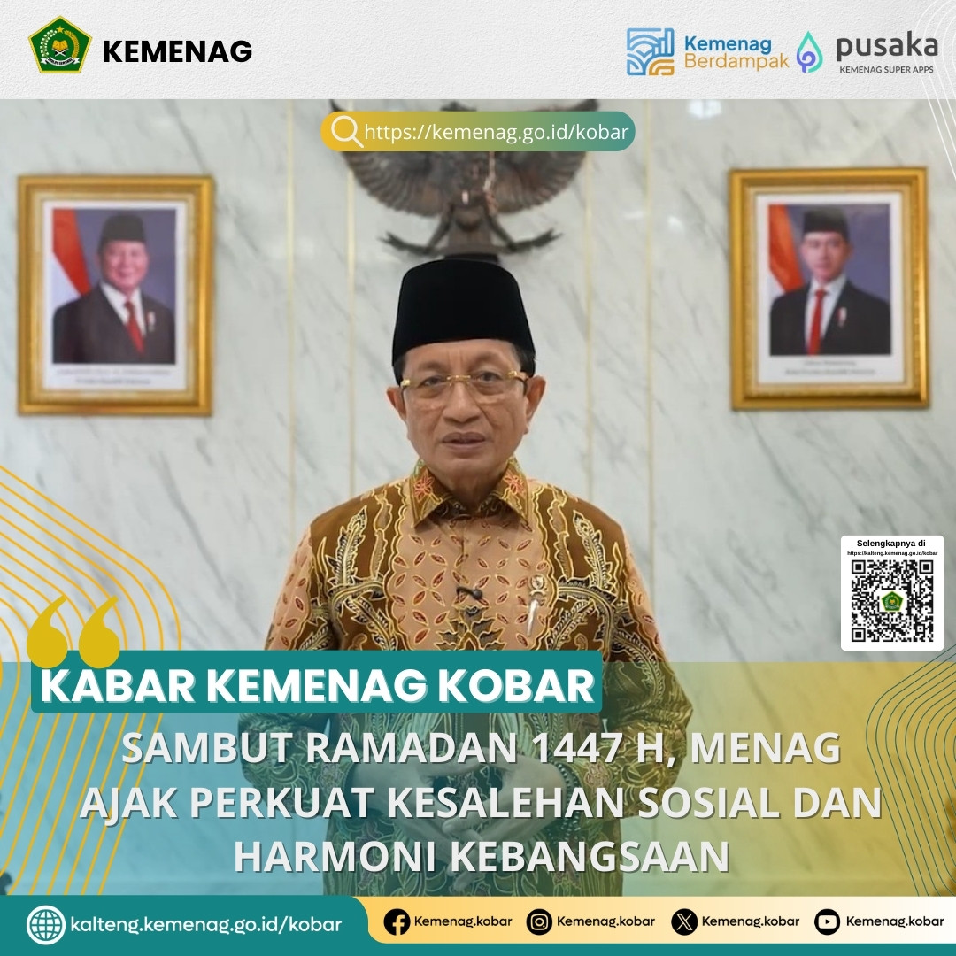 Diunggah Tanggal 18-02-2026 15:17:32 Sambut Ramadan 1447 H, Menag ajak Perkuat Kesalehan Sosial dan Harmoni Kebangsaan Menteri Agama (Menag) mengajak seluruh umat Islam menjadikan Ramadan 1447 H/2026 M sebagai momentum memperkuat kesalehan sosial dan harmoni kebangsaan... Baca Selengkapnya