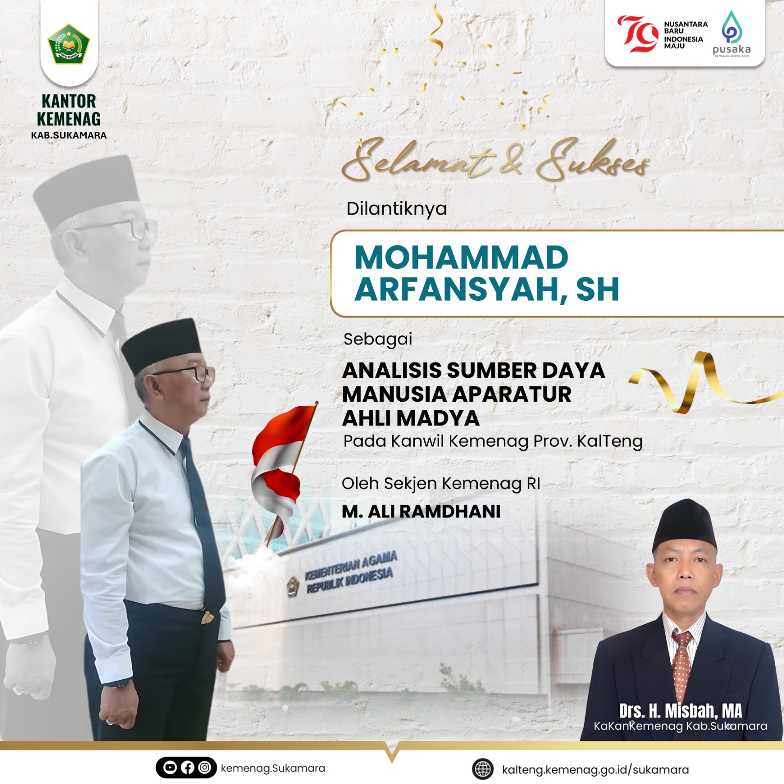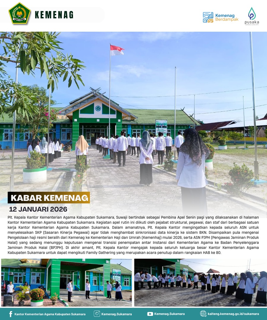 Sukamara, Humas- Plt. Kepala Kantor Kementerian Agama Kabupaten Sukamara, Suwaji, bertindak sebagai Pembina Apel Senin pagi yang dilaksanakan di halam...