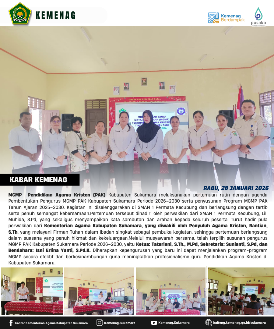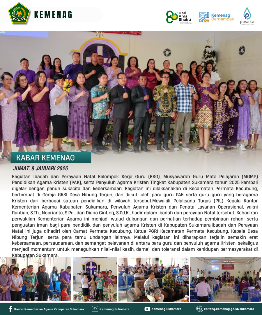 Sukamara, Humas — Kegiatan Ibadah dan Perayaan Natal yang diselenggarakan oleh Kelompok Kerja Guru (KKG), Musyawarah Guru Mata P...